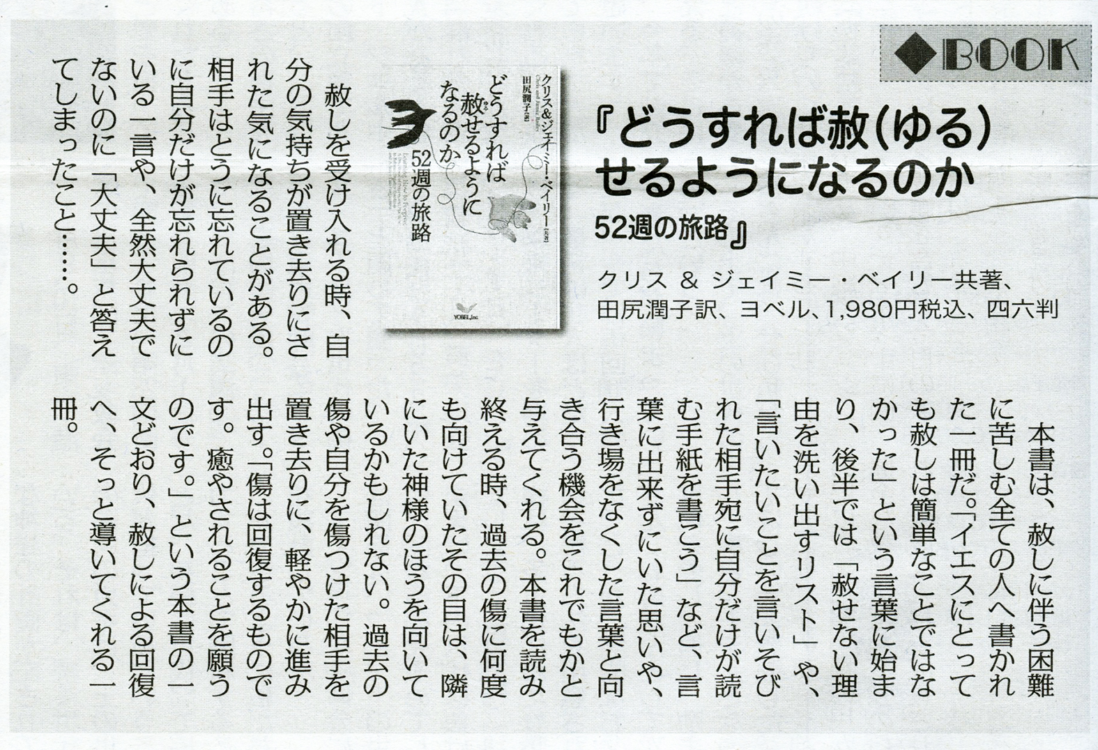 2026年2月12日 / 最終更新日 : 2026年2月12日 yobelinc 書評 クリスチャン新聞2026.2.15.日版に寸評が掲載されました。 クリス & ジェイミー・ベイリー [著]どうすれば赦せるようになるのか―52 週の旅路 クリス & ジェイミー・ベイリー [著]どうすれば赦せるようになるのか―52 週の旅路